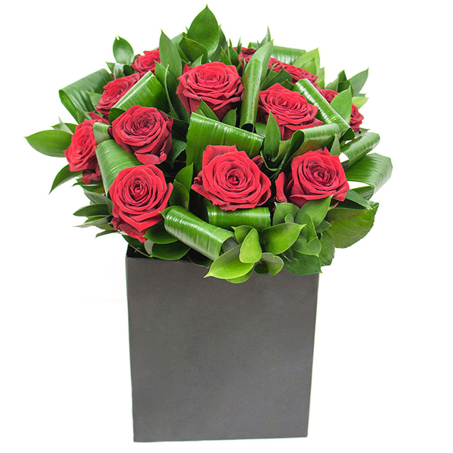 Enhance any occasion with our timeless red rose bouquet, paired with rich aspidistra leaves and luxurious ruscus. This beautifully crafted design adds a touch of elegance and sophistication.
